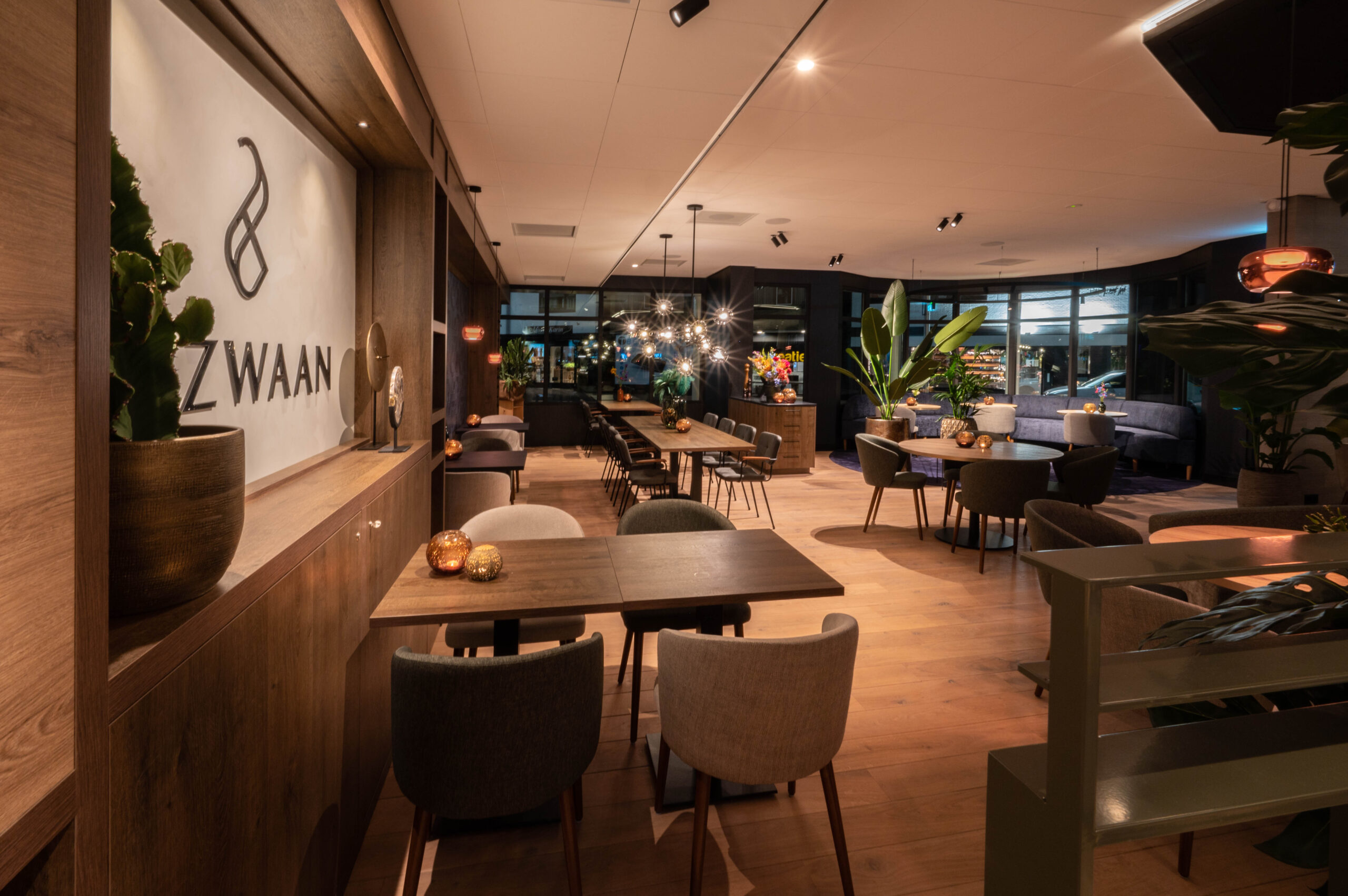 Op een wand in het restaurant hebben we het logo in graveerletters uitgevoerd, strak en simpel.